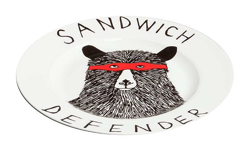 Смешная тарелка с рисунком медведя и надписью Sandwich Defender «защитник сэндвича» — отменное пополнение вашей коллекции интересной кухонной утвари. Она пригодна для повседневного использования и абсолютна незаменима для поднятия своего настроения и впечатления гостей. Эта тарелка станет забавным и необычным подарком на день рождения или любой другой случай, замечательным способом поднять настроение хмурым утром! Вы можете купить тарелку в подарок своим друзьям и коллегам, а можете — их детям. И те и другие будут довольны, ведь их завтраки и ужины навсегда перестанут быть скучными! Спешите купить яркую, позитивную тарелку Sandwich Defender и другие смешные тарелки из этой коллекции!