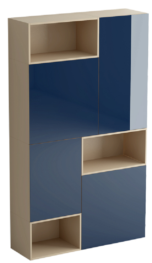 Шкаф состоит из комбинации четырех отделений с распашными дверями и трёх ниш. Все отделения оборудованы полками. Двери шкафа открываются по принципу «нажал-открыл». Шкаф установлен на ножки с возможностью регулировки по высоте.