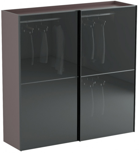 Корпус: ЛДСП. Фасад: чёрный алюминиевый профиль / толщиной 4мм. / тёмно-серое полупрозрачное закалённое стекло